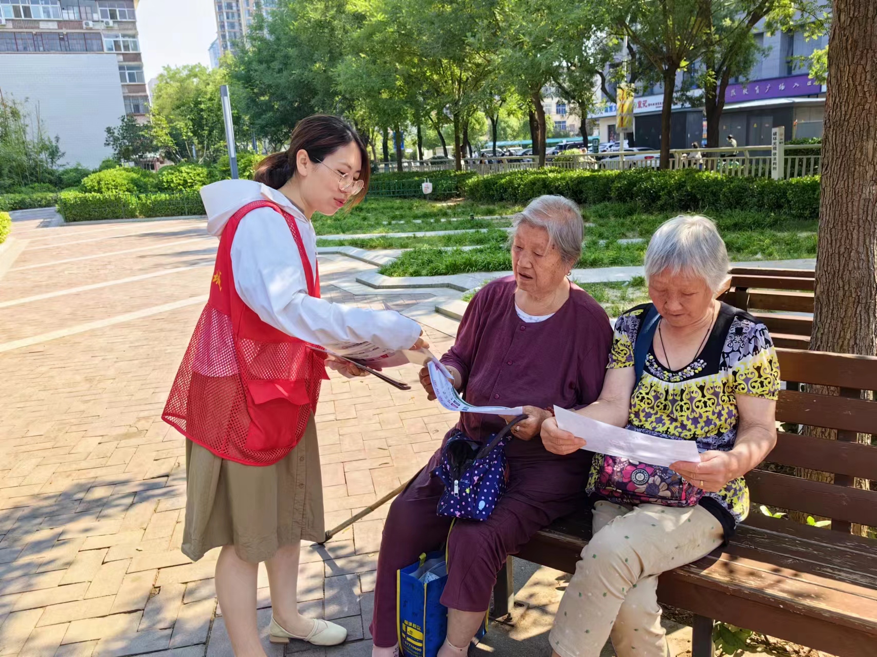 在社区,中心党员志愿者们在垃圾分类垃圾桶旁向居民发放垃圾分类宣传手册,用通俗易懂的语言讲解如何区分可回收垃圾、有害垃圾、厨余垃圾、其他垃圾等相关知识,让居民更直观地了解生活垃圾分类的重要性。在公园,中心党员志愿者们为群众介绍垃圾分类的意义,解答居民的垃圾分类疑问,倡导居民群众养成垃圾分类投放的良好习惯和行动自觉,让“绿色、低碳、环保”的理念深入人心。