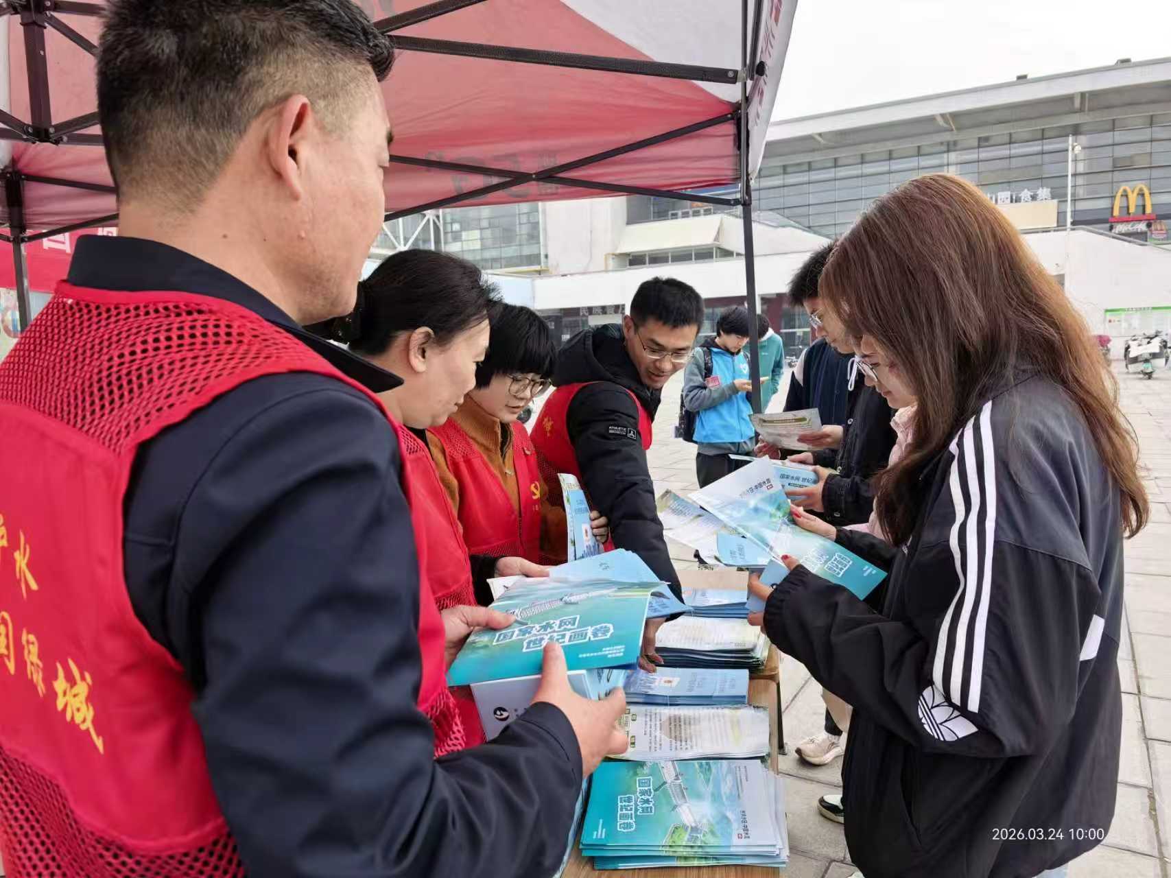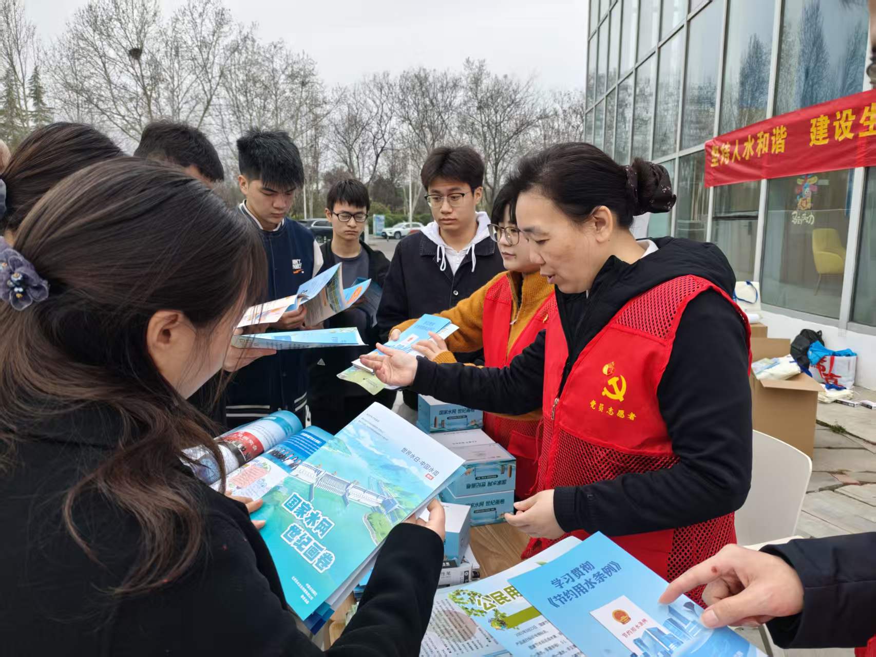 活动现场,我中心工作人员布设宣传阵地,摆放宣传展板,悬挂宣传条幅,发放宣传册,向同学们讲解《节约用水条例》、校园节水知识等内容,引导广大师生树牢节水意识、践行绿色理念,以实际行动助力水资源节约集约利用与国家水安全保障。现场宣传氛围浓厚,师生们纷纷表示要充分践行节水行动,争做节水“宣传员”、“监督员”。