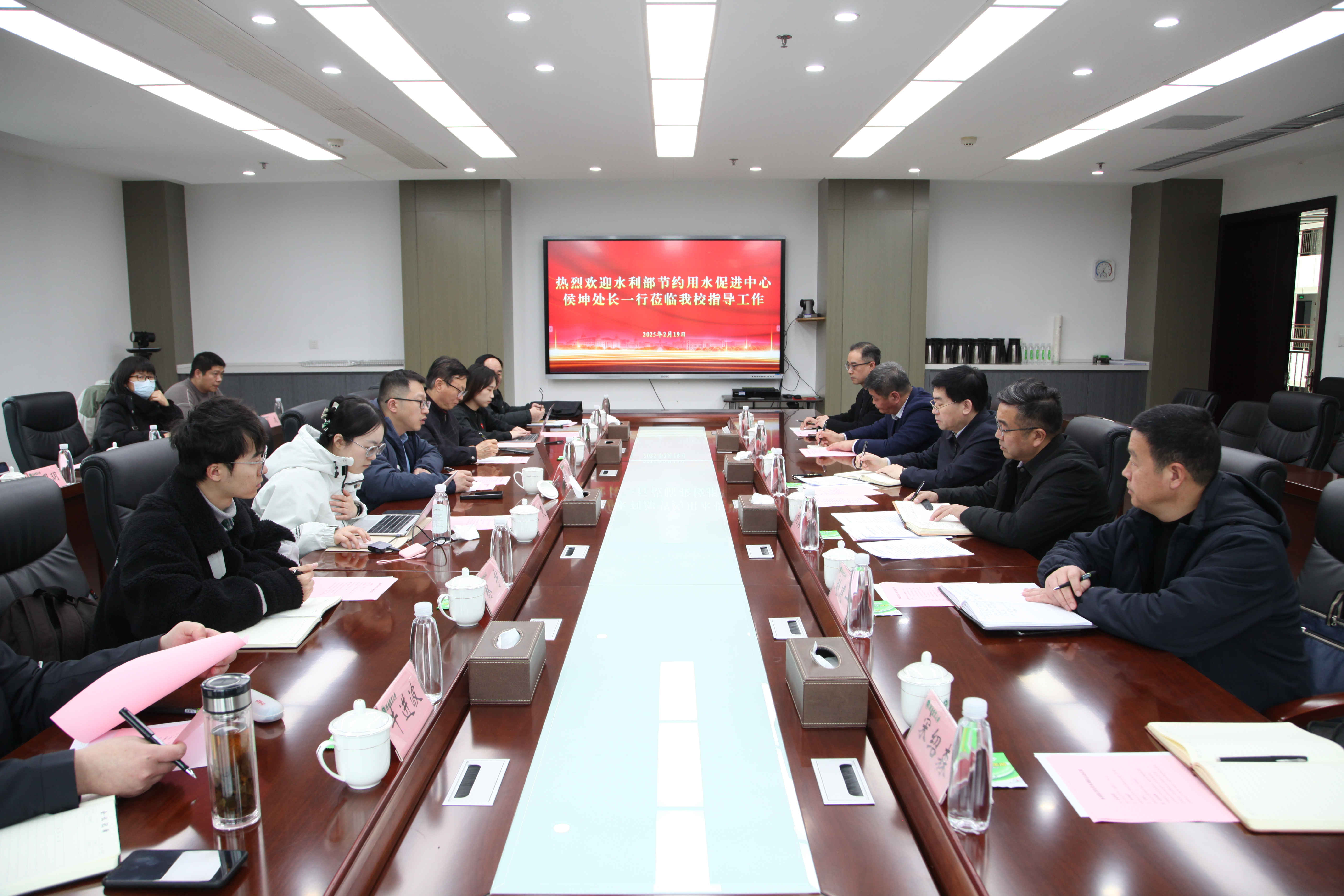 2月19日,水利部节约用水促进中心调研组一行到我市开展黄河流域高校强制性用水定额编制工作专题调研。省水利厅水文水资源处三级调研员王宣河、市水利局副局长张琨玥等陪同。
