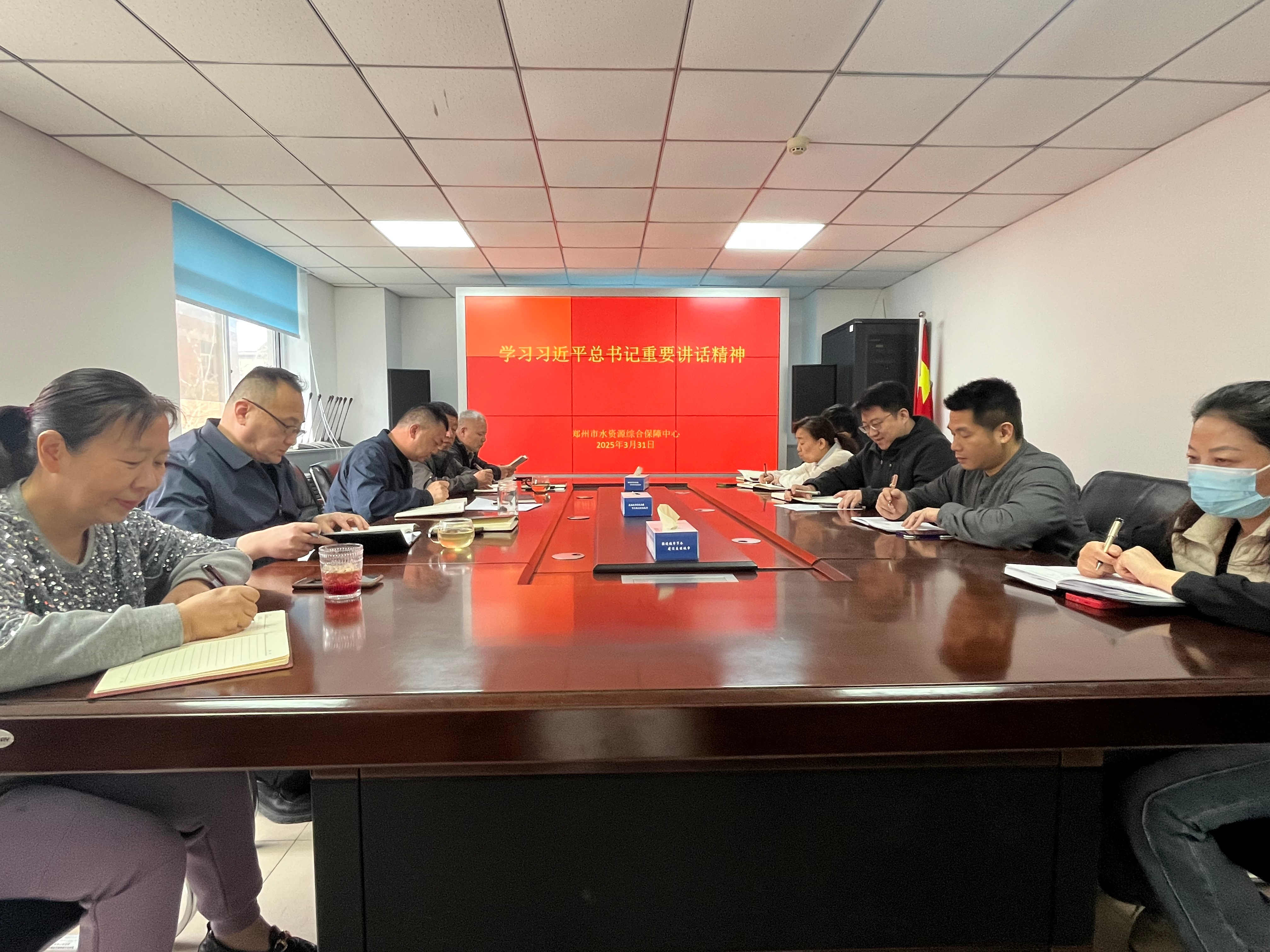 3 月 31 日,郑州市水资源综合保障中心召开学习习近平总书记重要讲话精神专题会议,深入学习《习近平关于加强党的作风建设论述摘编》精神,中心党支部书记、主任陈冠英主持会议,中心领导班子及中层以上干部参加此次会议。