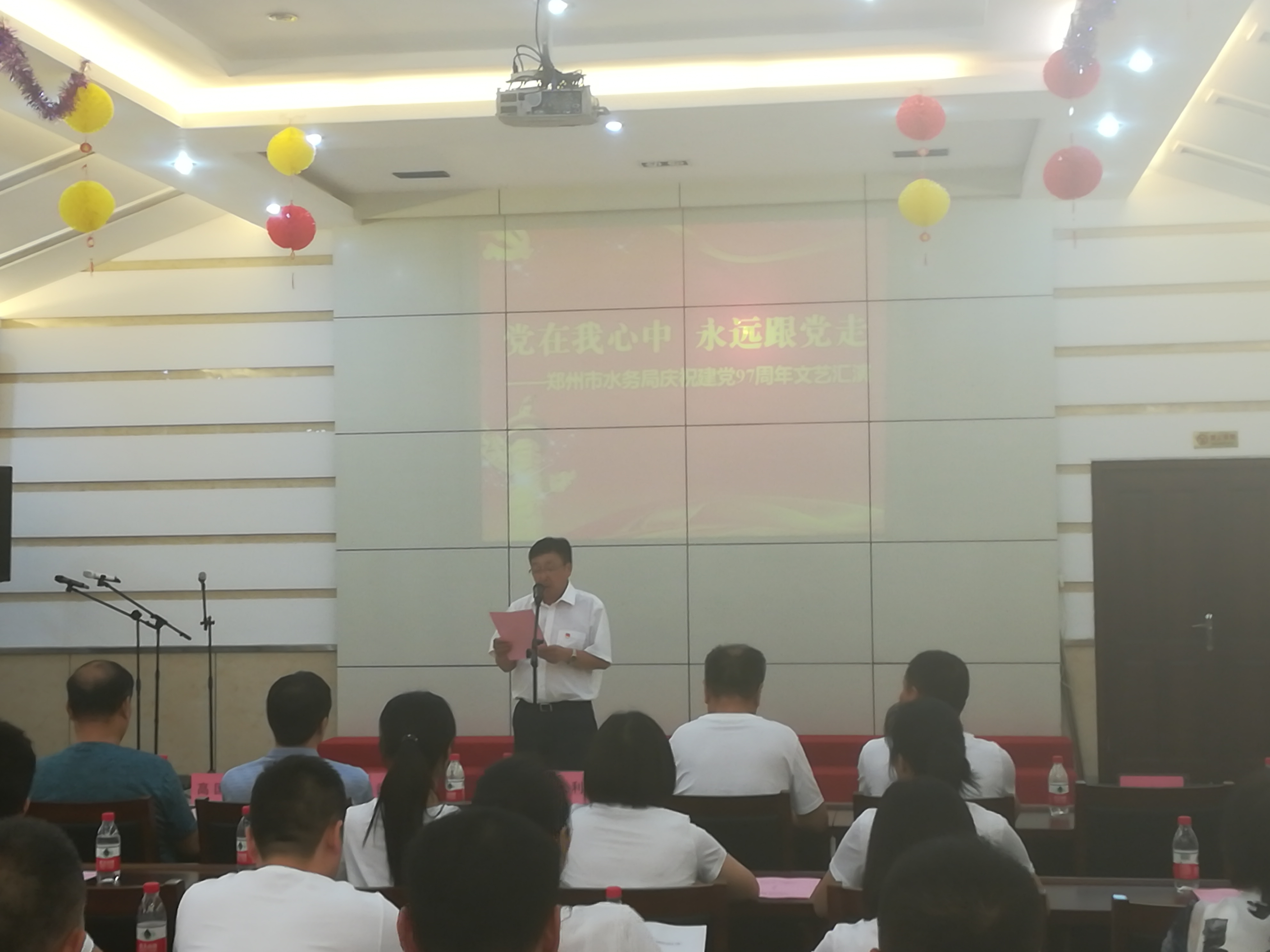 为庆祝中国共产党建党97周年,全面宣传党的光辉历程、伟大成就和优良传统,6月28日,郑州市水务局在常庄水库举行“党在我心中,永远跟党走”庆七一文艺汇演,市供水节水技术中心朗诵《不忘初心 继续前行》入选参演。