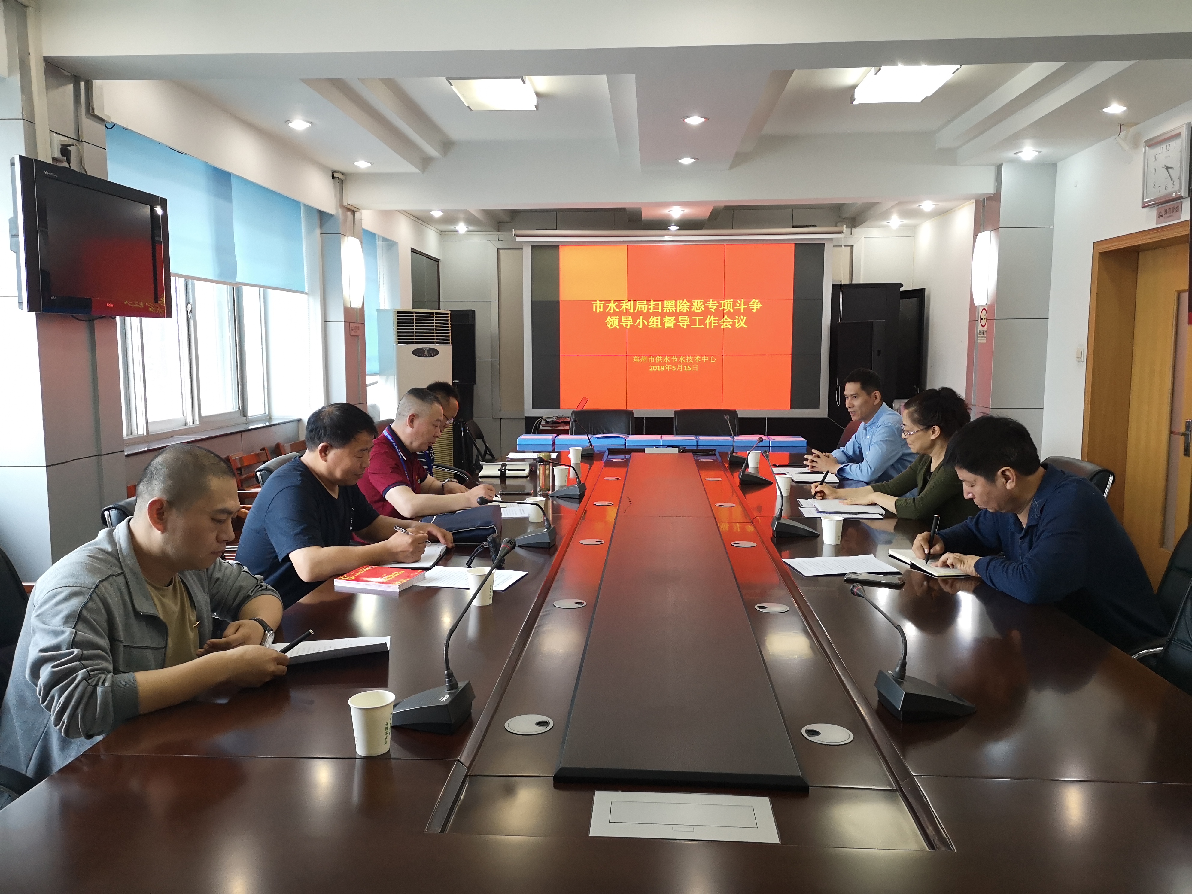 5月15日下午,郑州市水利局扫黑除恶第二督导组一行四人在组长王建民带领下,到市供水节水技术中心督导检查扫黑除恶专项斗争工作开展情况,市供水节水技术中心党支部书记谢灵芝、副主任李郑生参加会议。