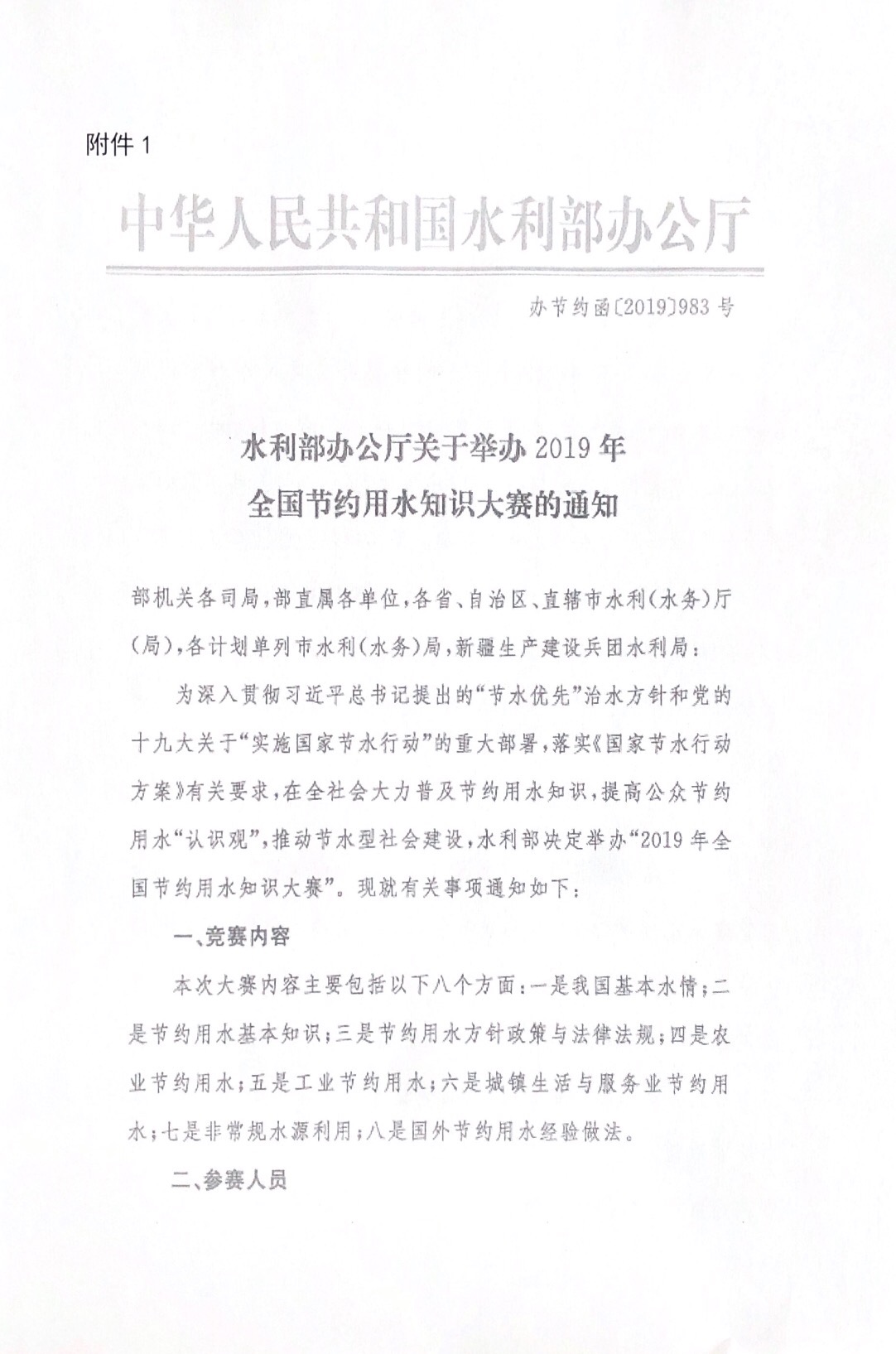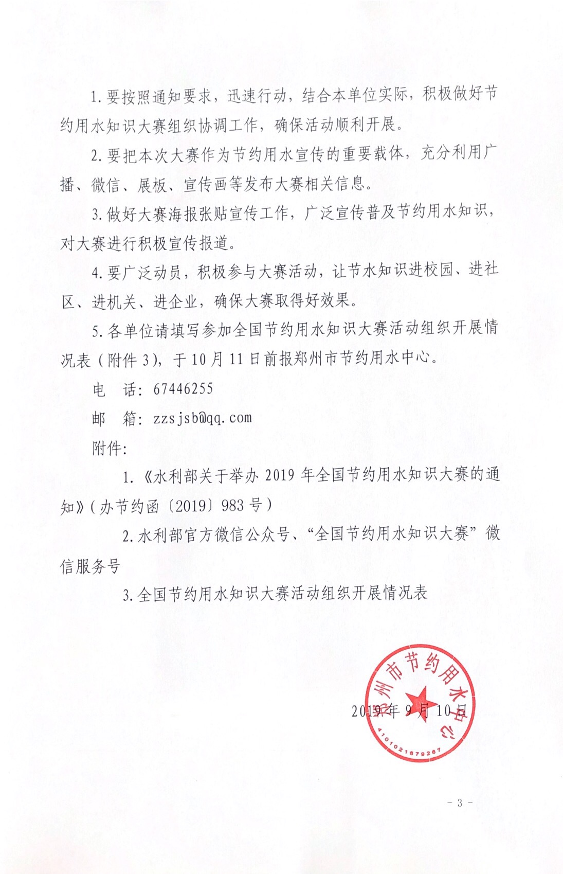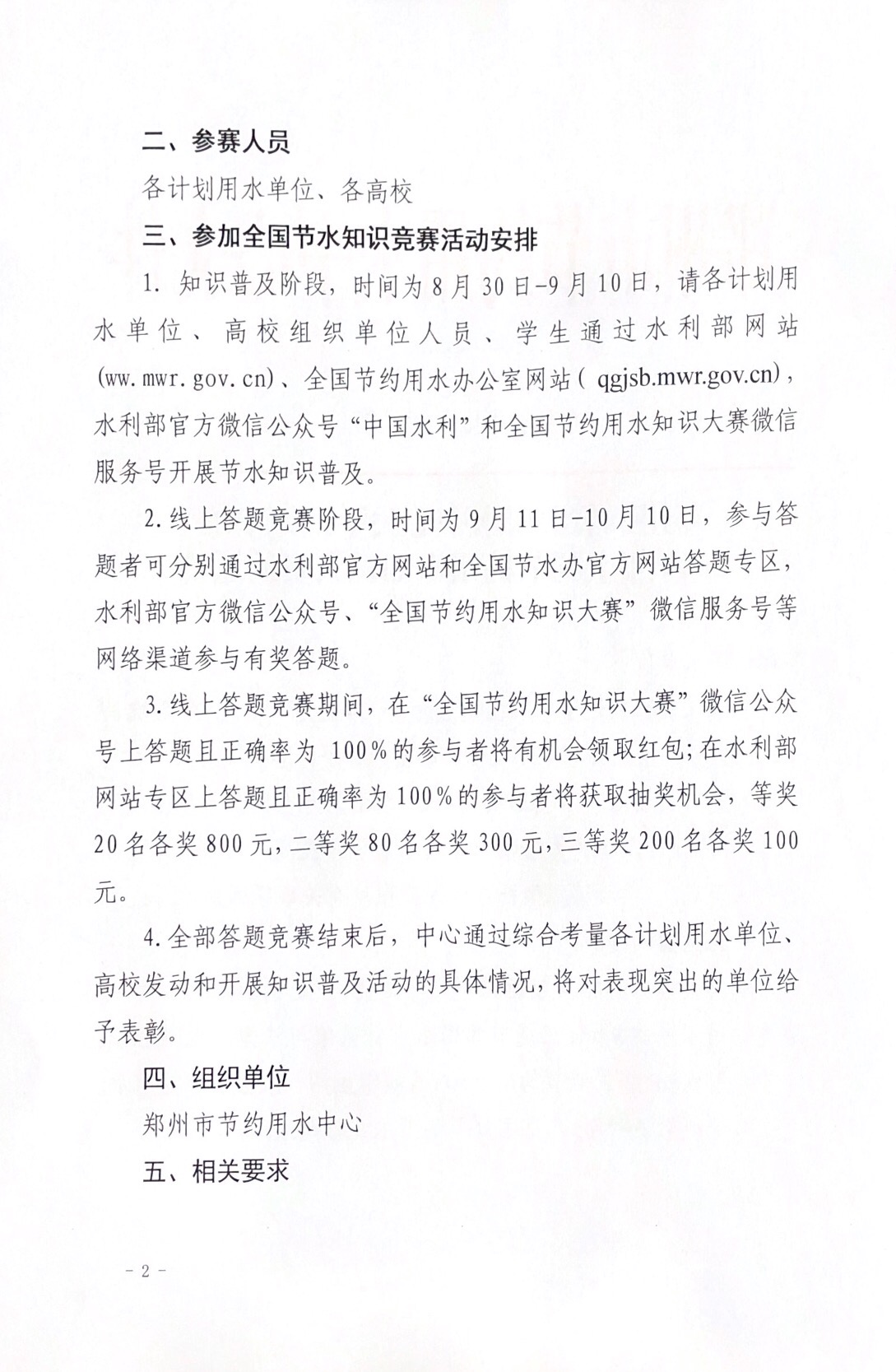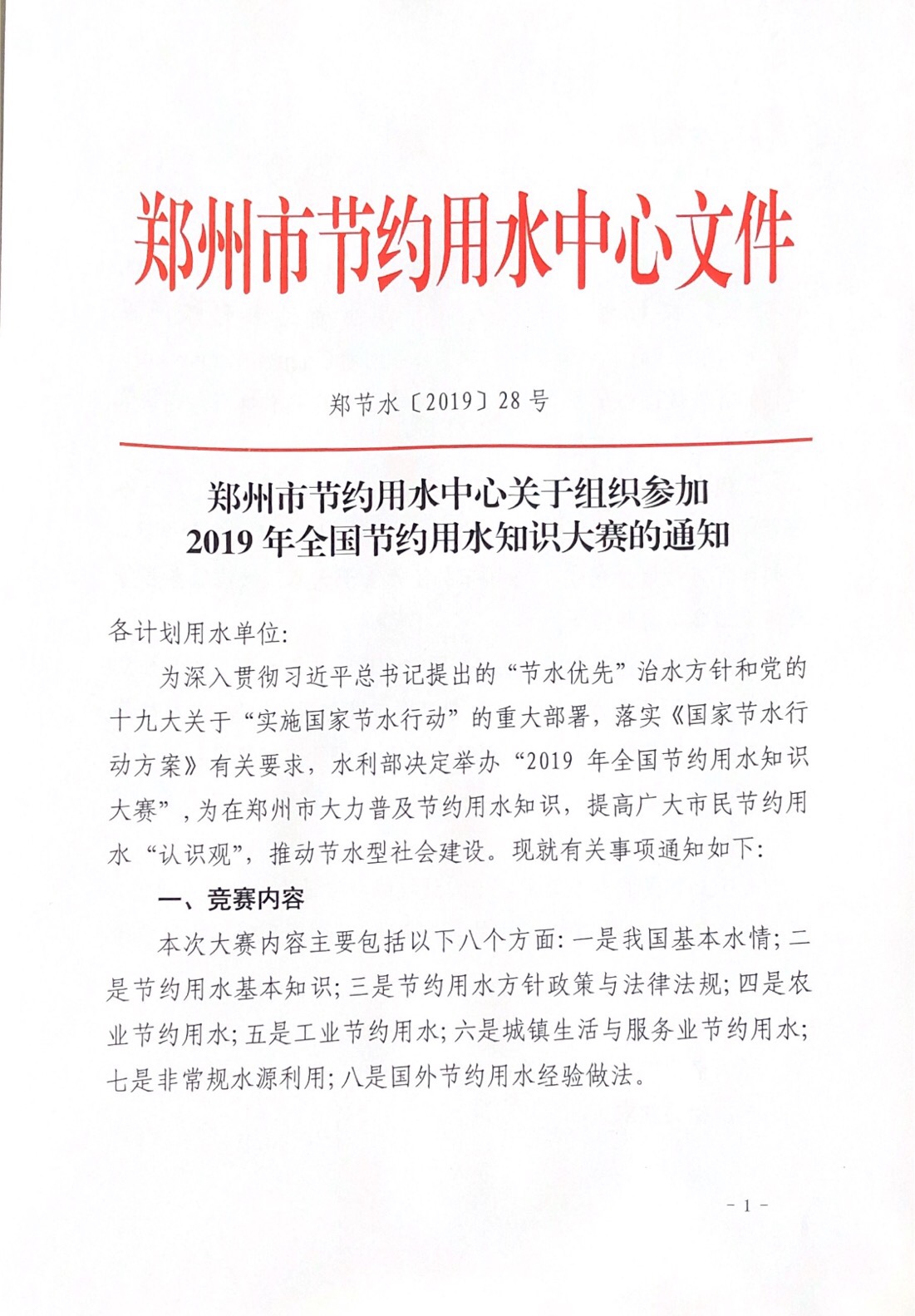 郑州市节约用水中心关于组织参加2019年全国节约用水知识大赛的通知